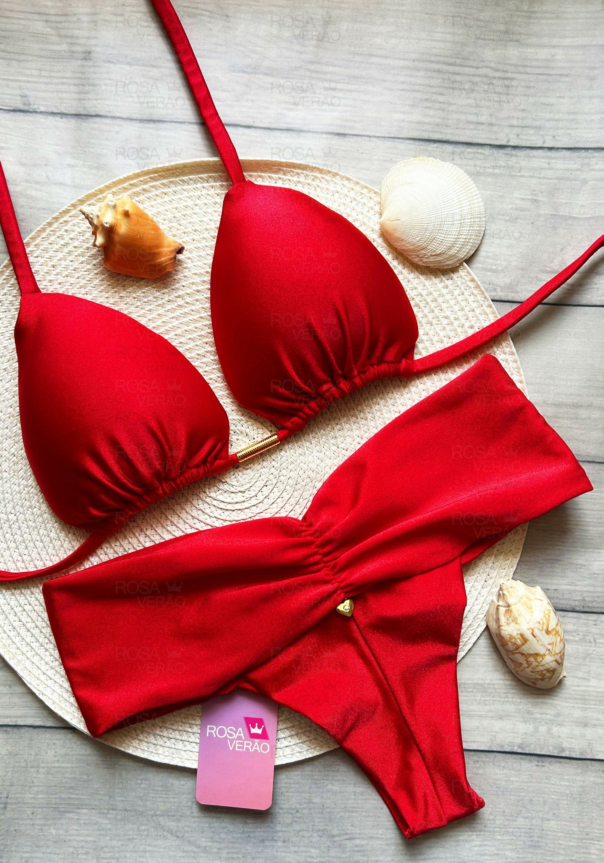 Biquíni Cintura Alta Efeito Lipo Vermelho Gloss