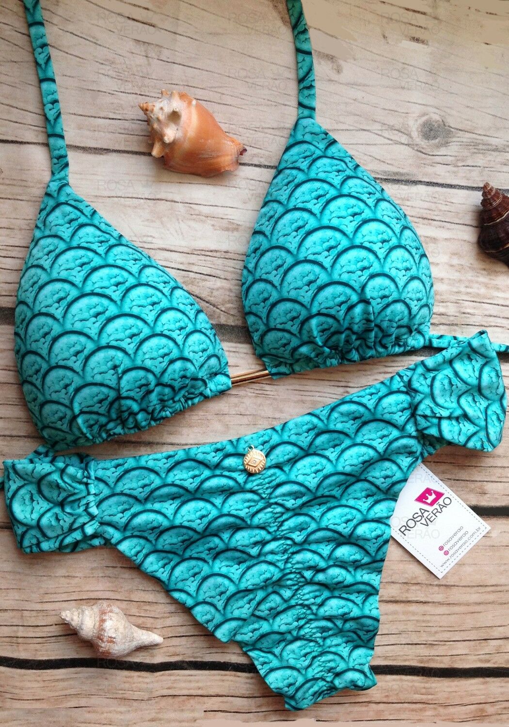 O tecido é de ótima qualidade, como o acabamento dos biquínis. Achei bacana a opção do bojo removível, no entanto, um dos bojos tinha um amassado difícil de tirar. Amei o brinde e o capricho na embalagem.