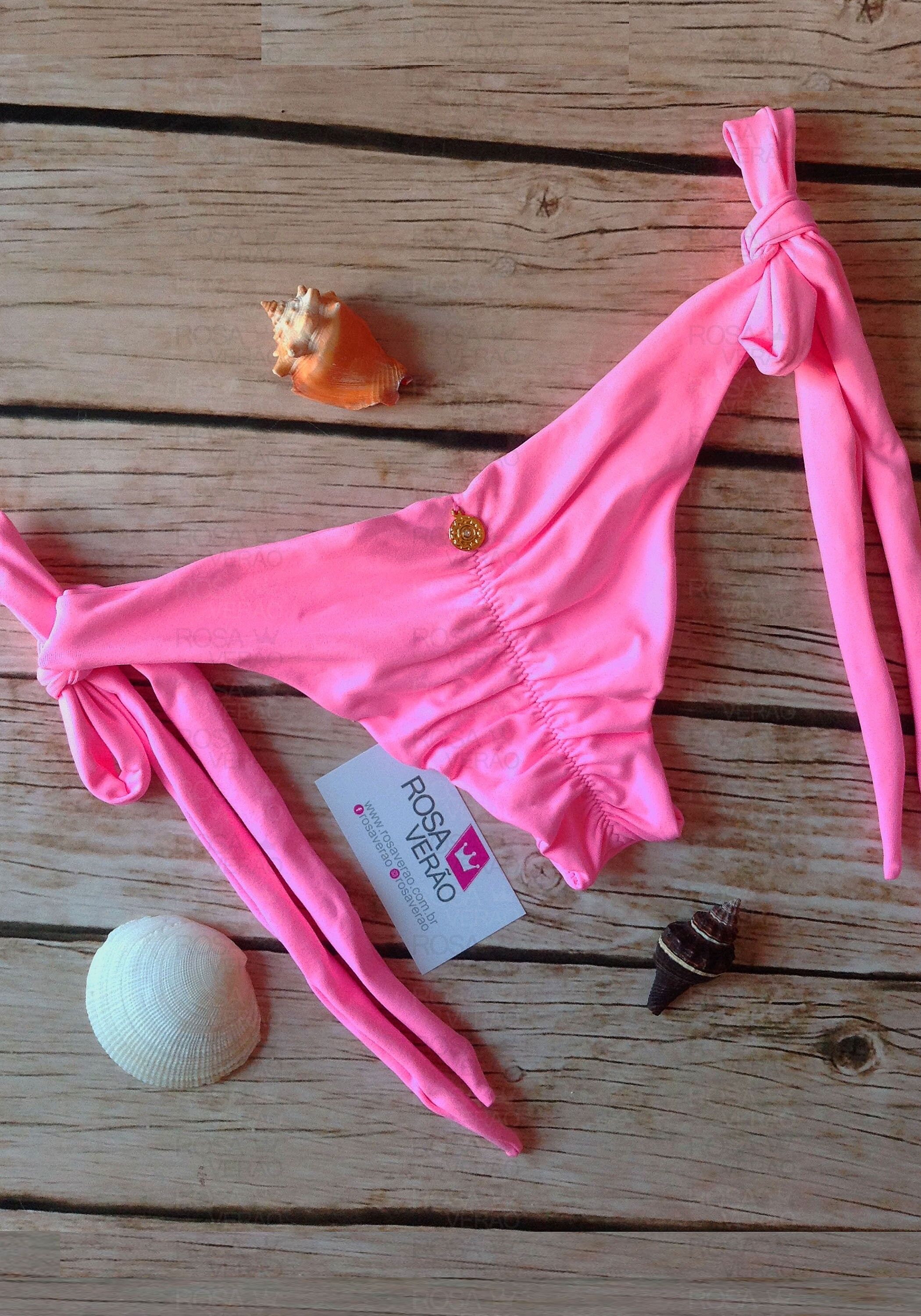 Biquíni Lacinho Fio Duplo Canelado Rosa Pink Neon