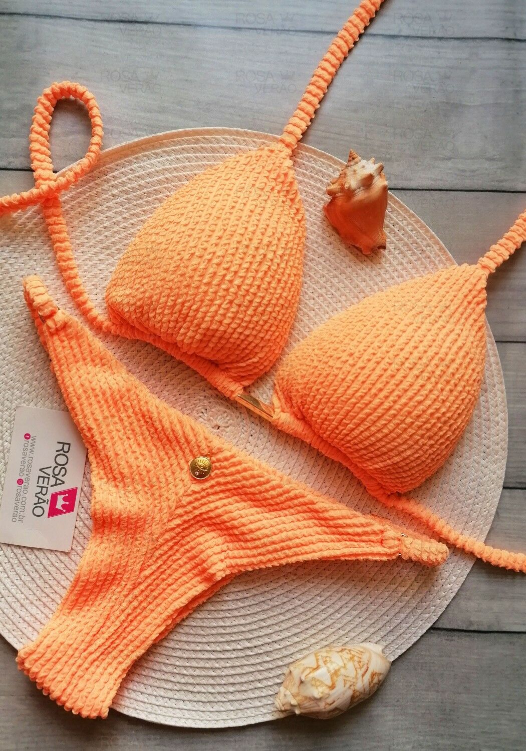 Top de biquíni cortininha em tecido texturizado monaco laranja neon.