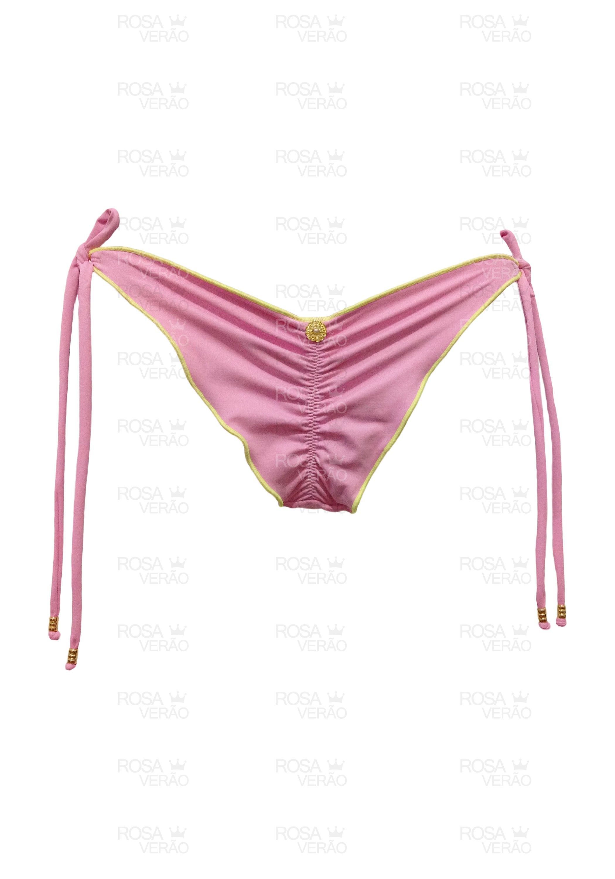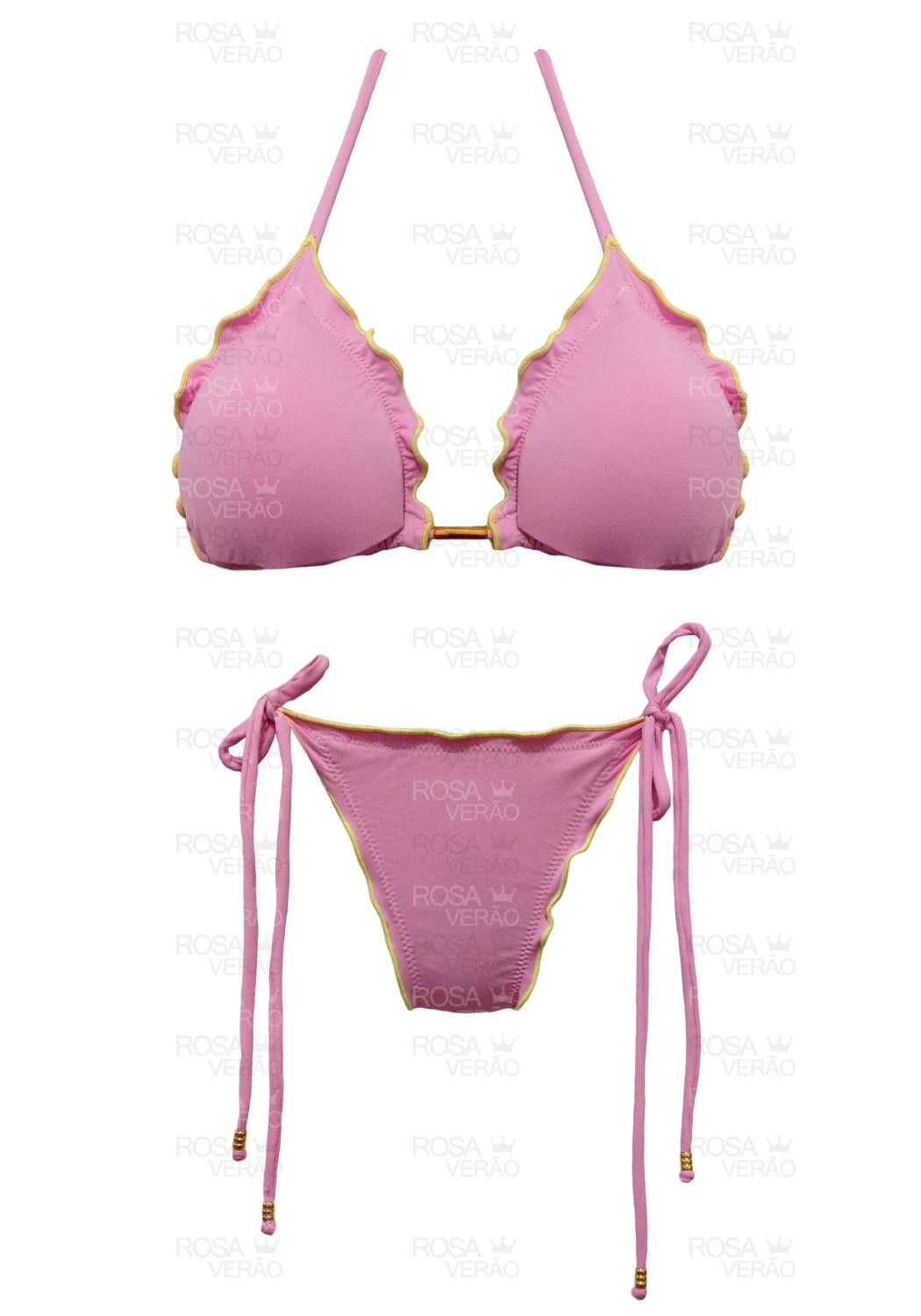 Biquíni cortininha ripple/ruffle empina bumbum rosa bebê e verde neon com amarrações laterais. Confeccionado com tecido da mais alta qualidade, com proteção dos raios UVA/UVB e com forro especial que não deixa entrar areia no biquíni. Possui acabamento em fru-fru, bojo removível desenvolvido para realçar o seio de forma natural, além de acompanhar acessórios banhados a ouro.